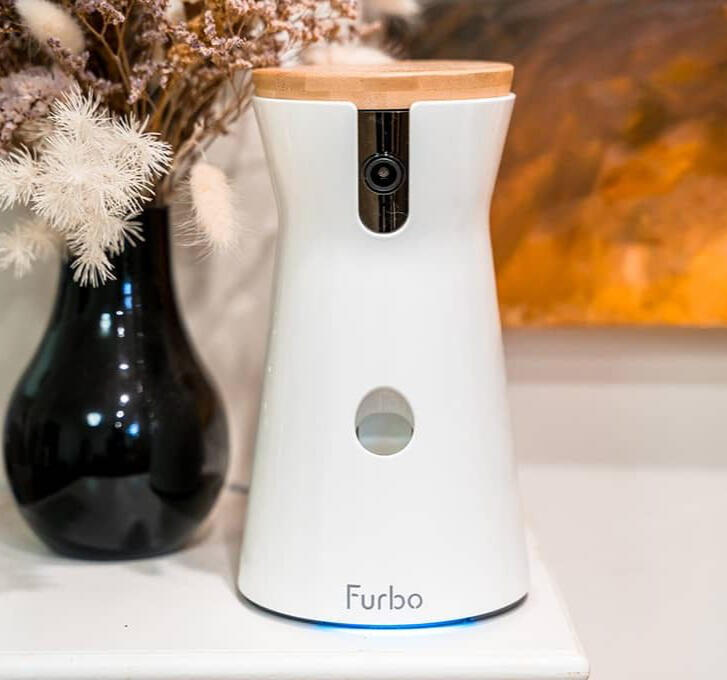 Check in with your pets throughout the day, talk to them through the device, and you can program it to throw treats!